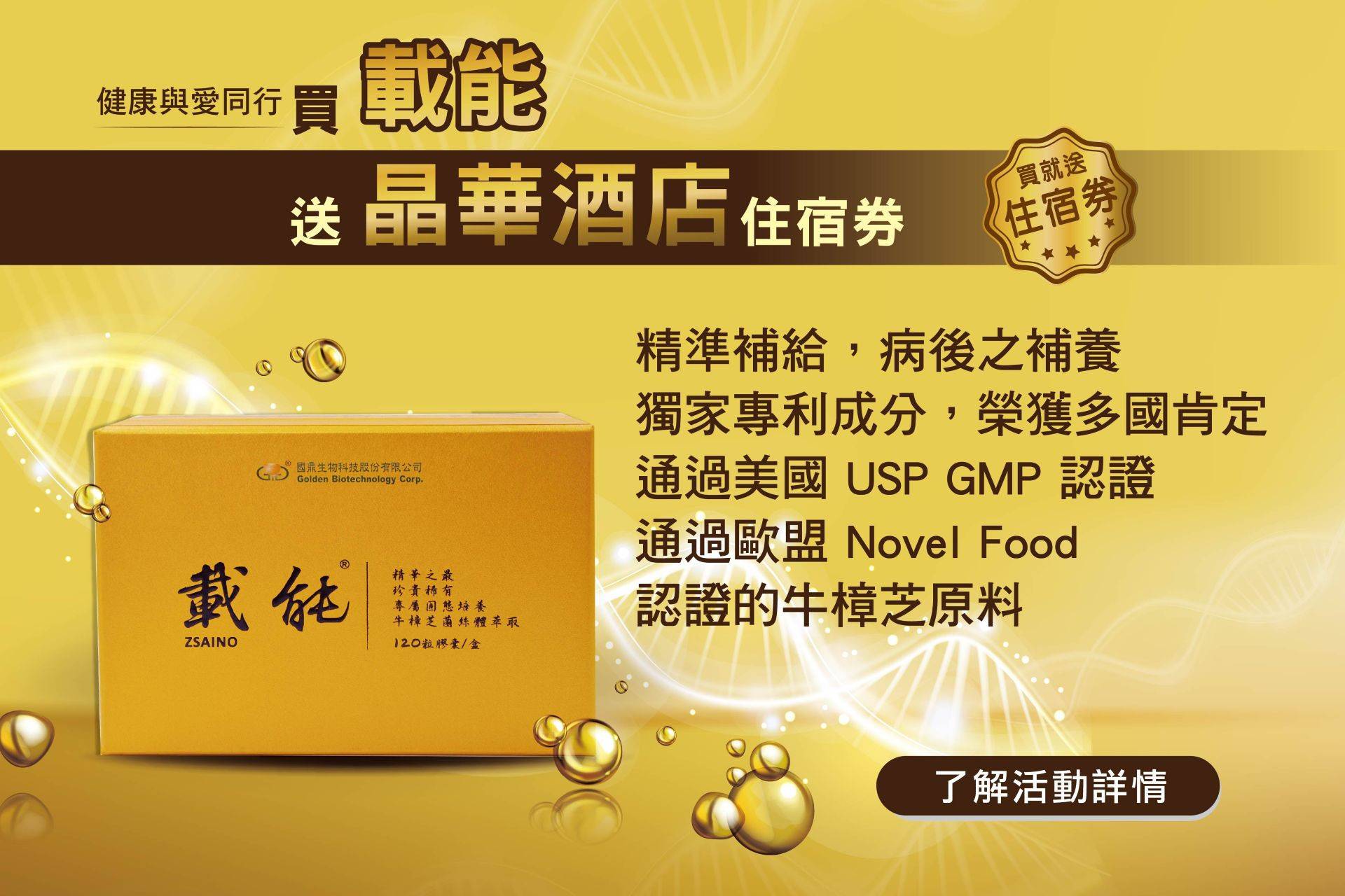 活動期間內購買【載能 120 粒 1 組】,登錄發票即可獲得「晶華酒店住宿券」。 |